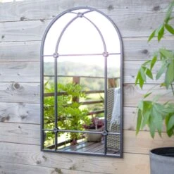 La Hacienda Aston & Wold Arundel Black Arch Framed Garden Mirror 1000mm X 600mm