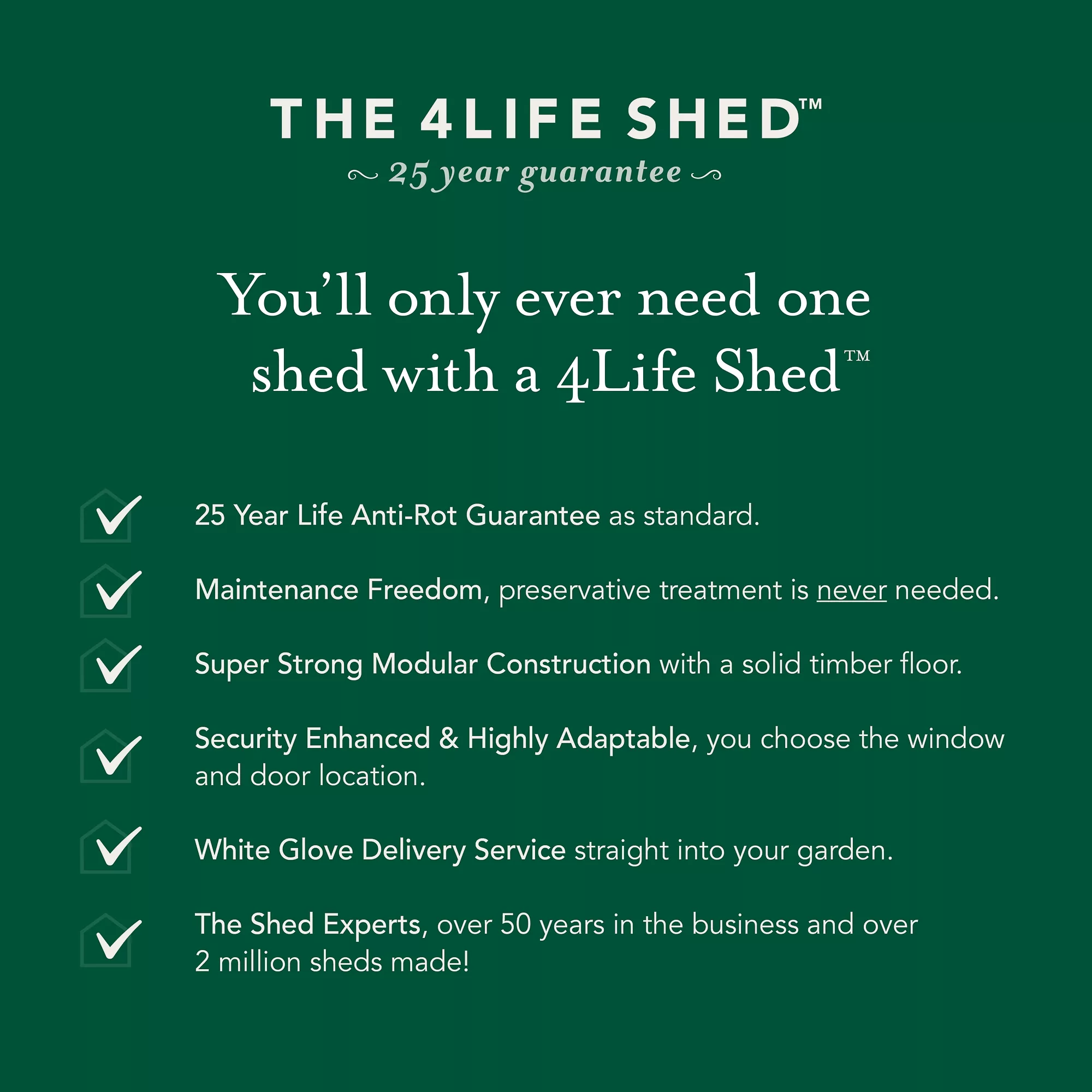 The Forest 4Life Overlap Pressure Treated 10×10 Apex Shed is strong, and secure. It’s a great value way of adding a large, versatile working area to your outdoor space. This shed offers a wide range of solutions from simple garden storage to a larger workshop space. This wooden shed comes with an improved design, featuring modular panels.