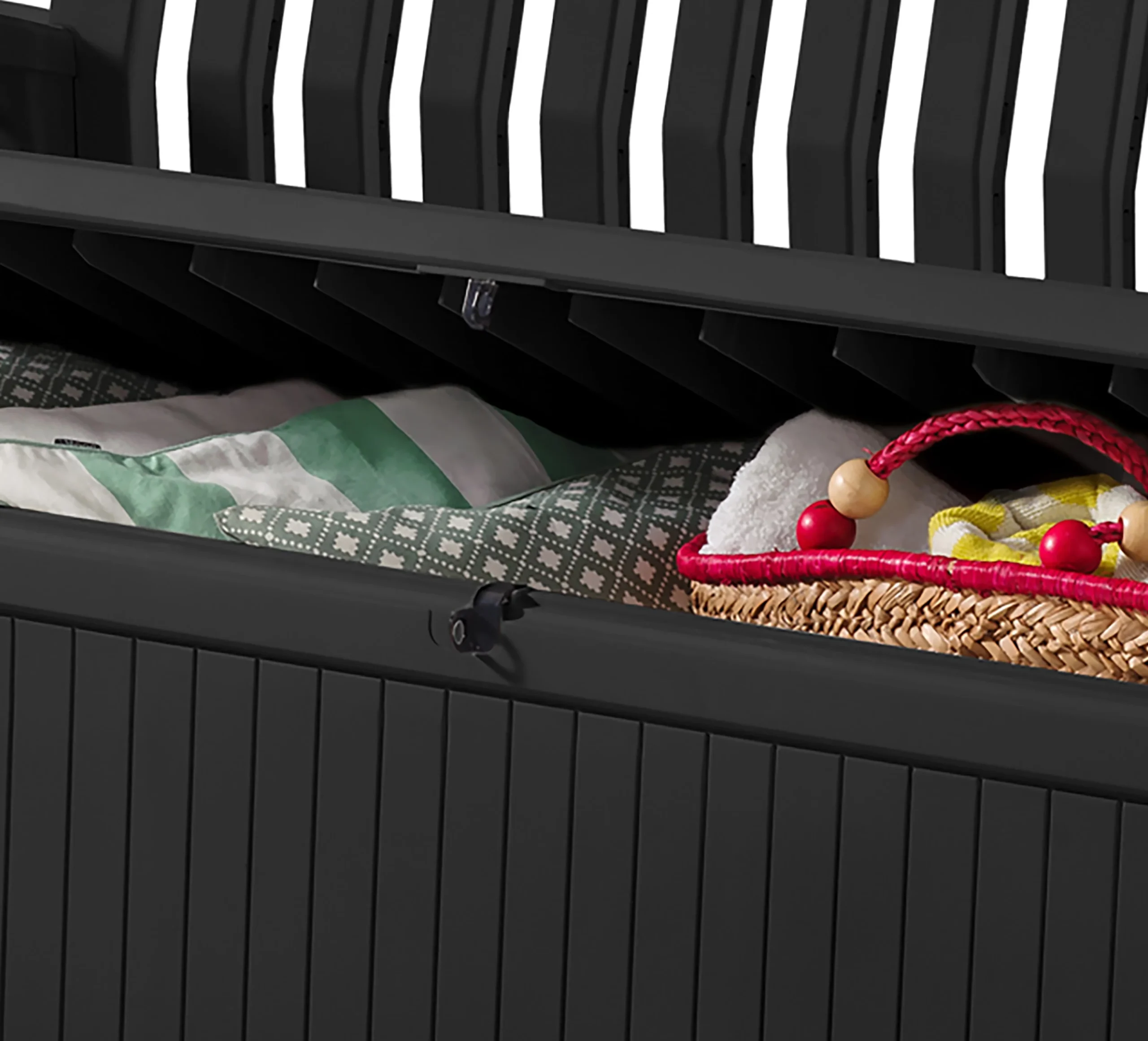 - Ideal outdoor storage bench for garden tools and equipment, furniture cushions, garden games and accessories