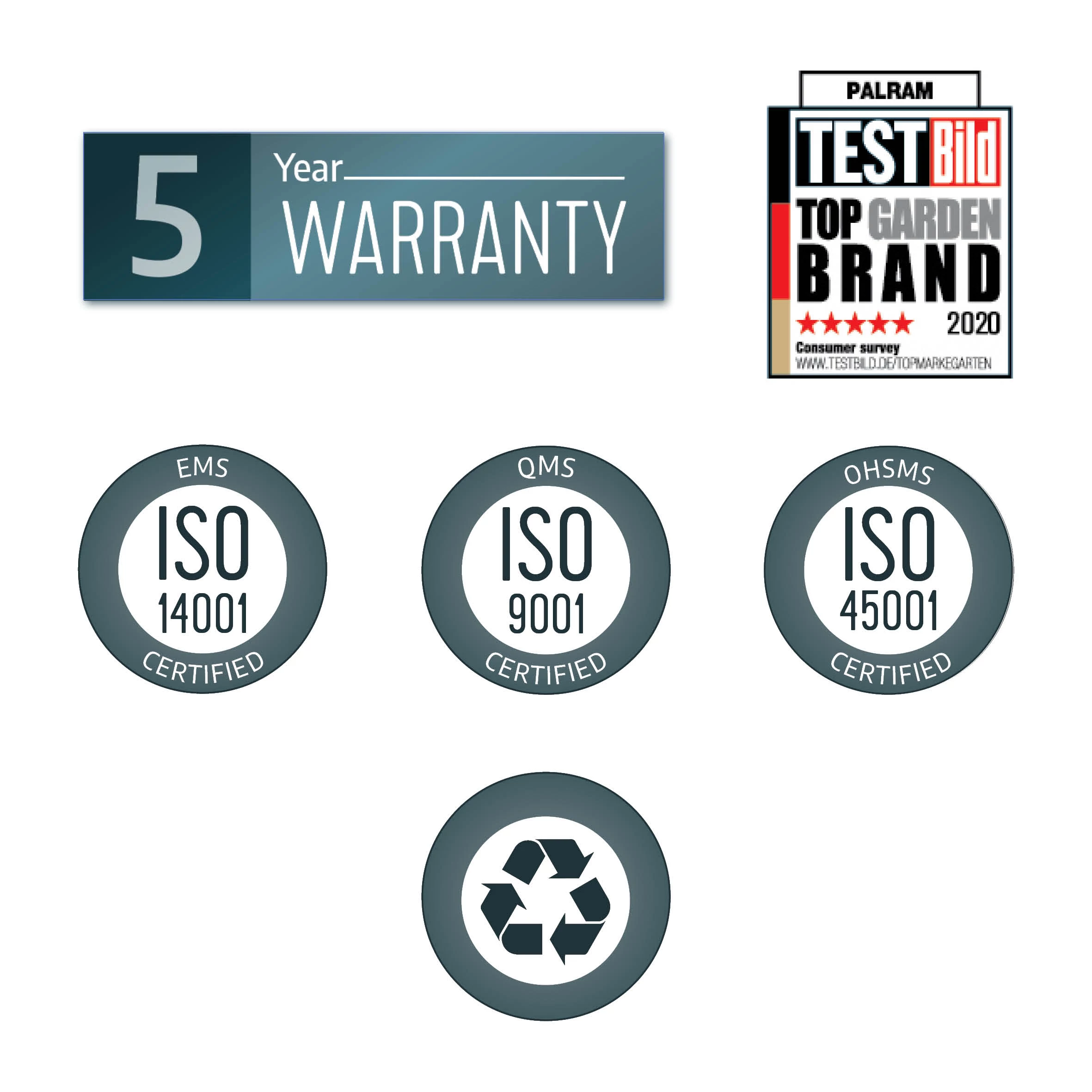 - Strong, grey powder coated, corrosion resistant aluminium frame for long lasting durability