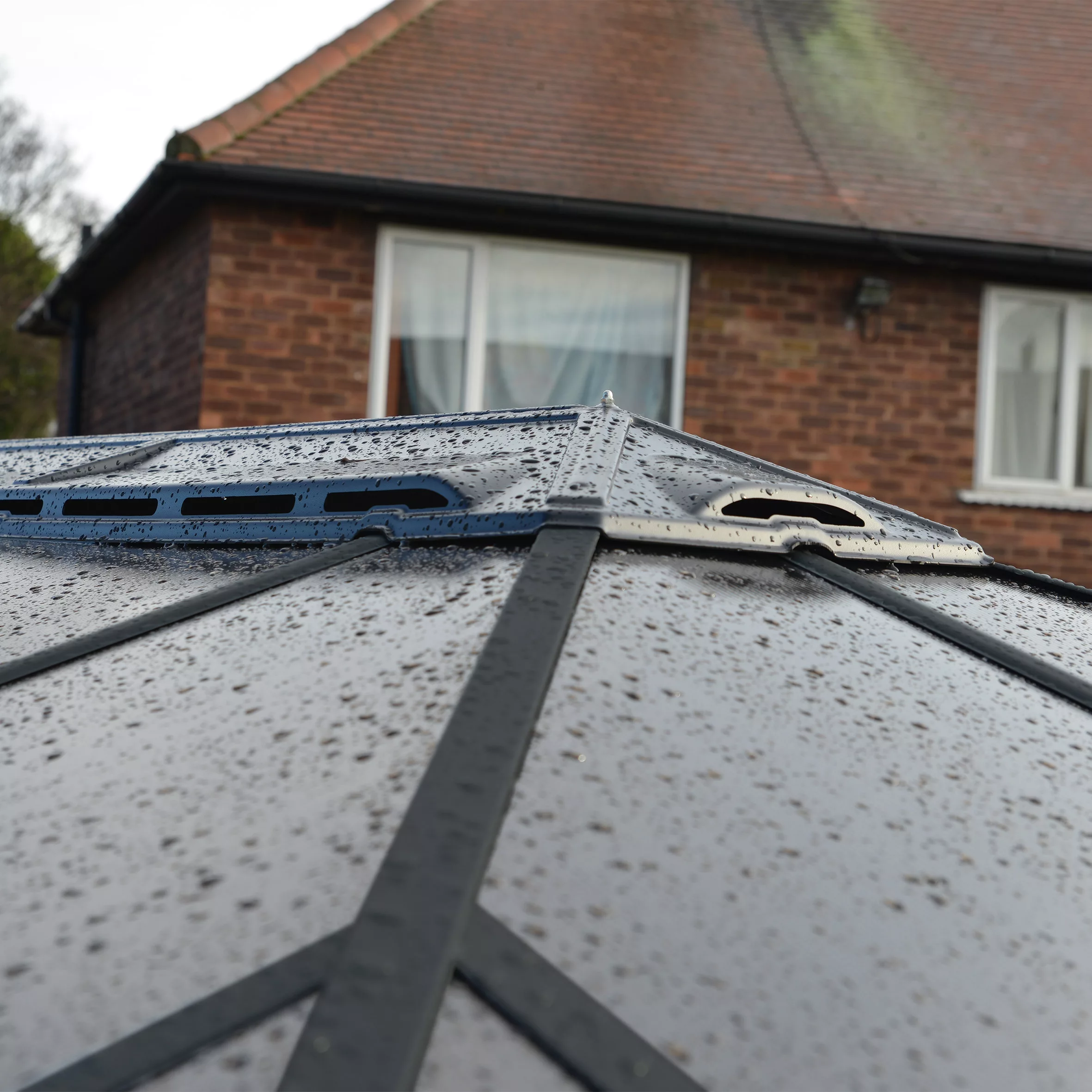 - Shatterproof, 100% UV protected 6 mm twin-wall polycarbonate panels protect from harmful UV rays, hail and snow