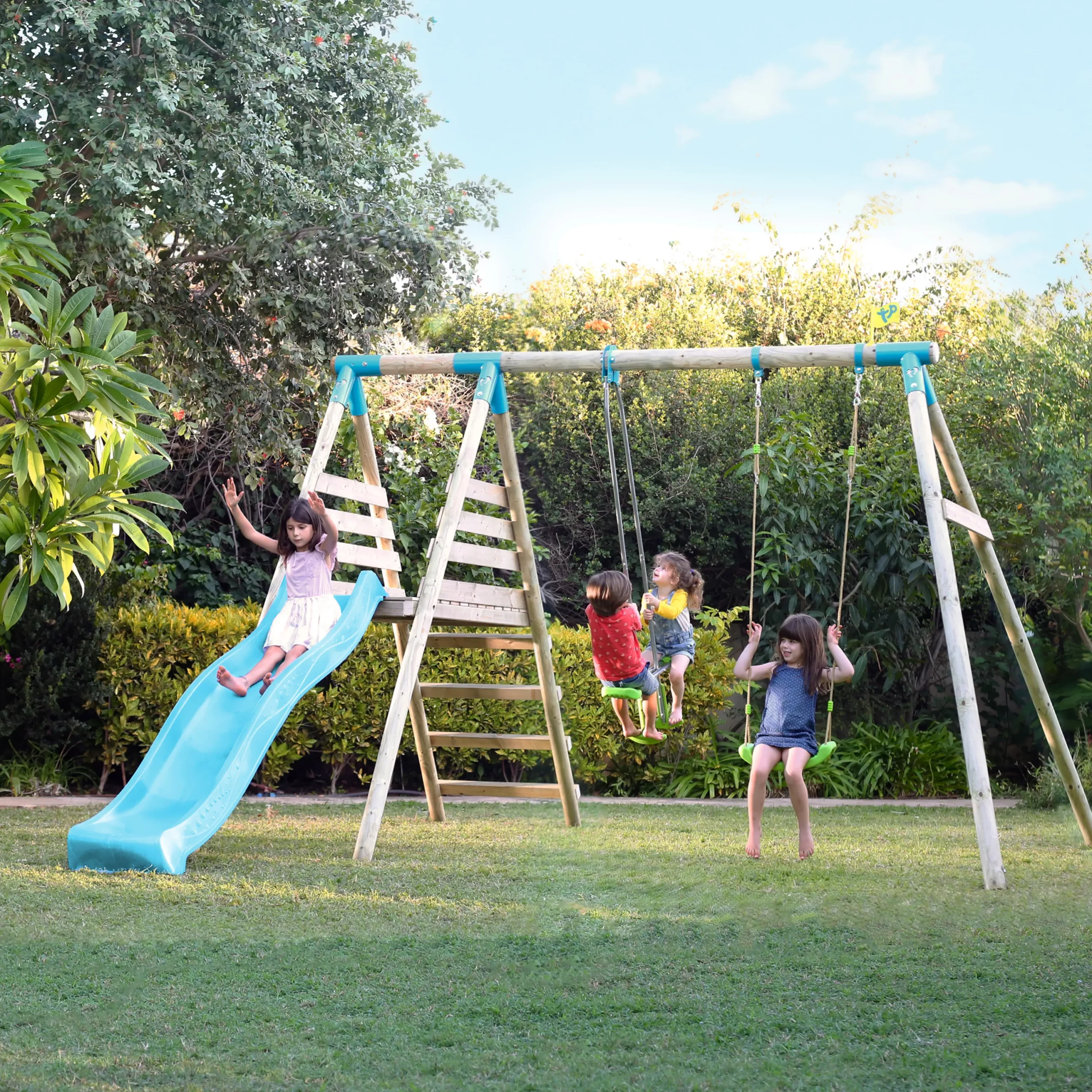 • Swing frame is sold complete with climbing deck and 2.5m Wavy Slide (colour may vary)