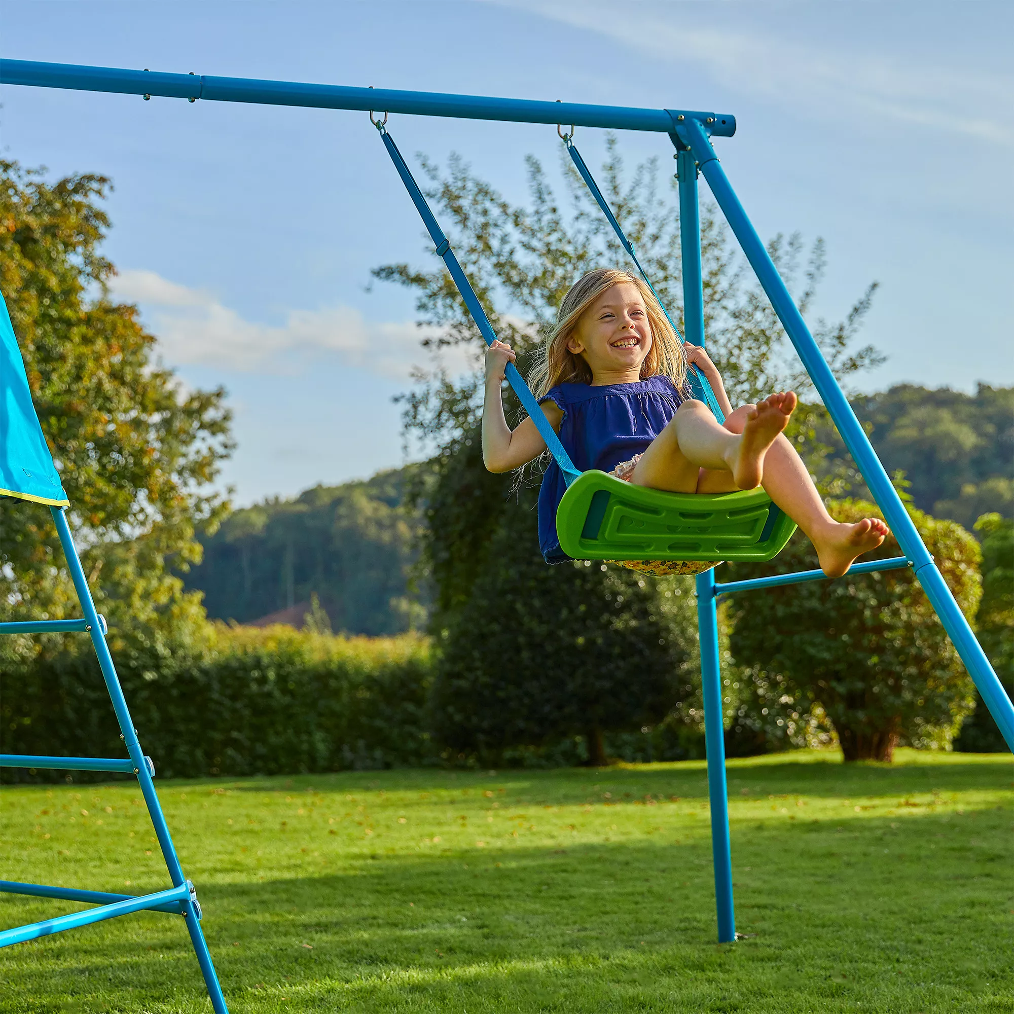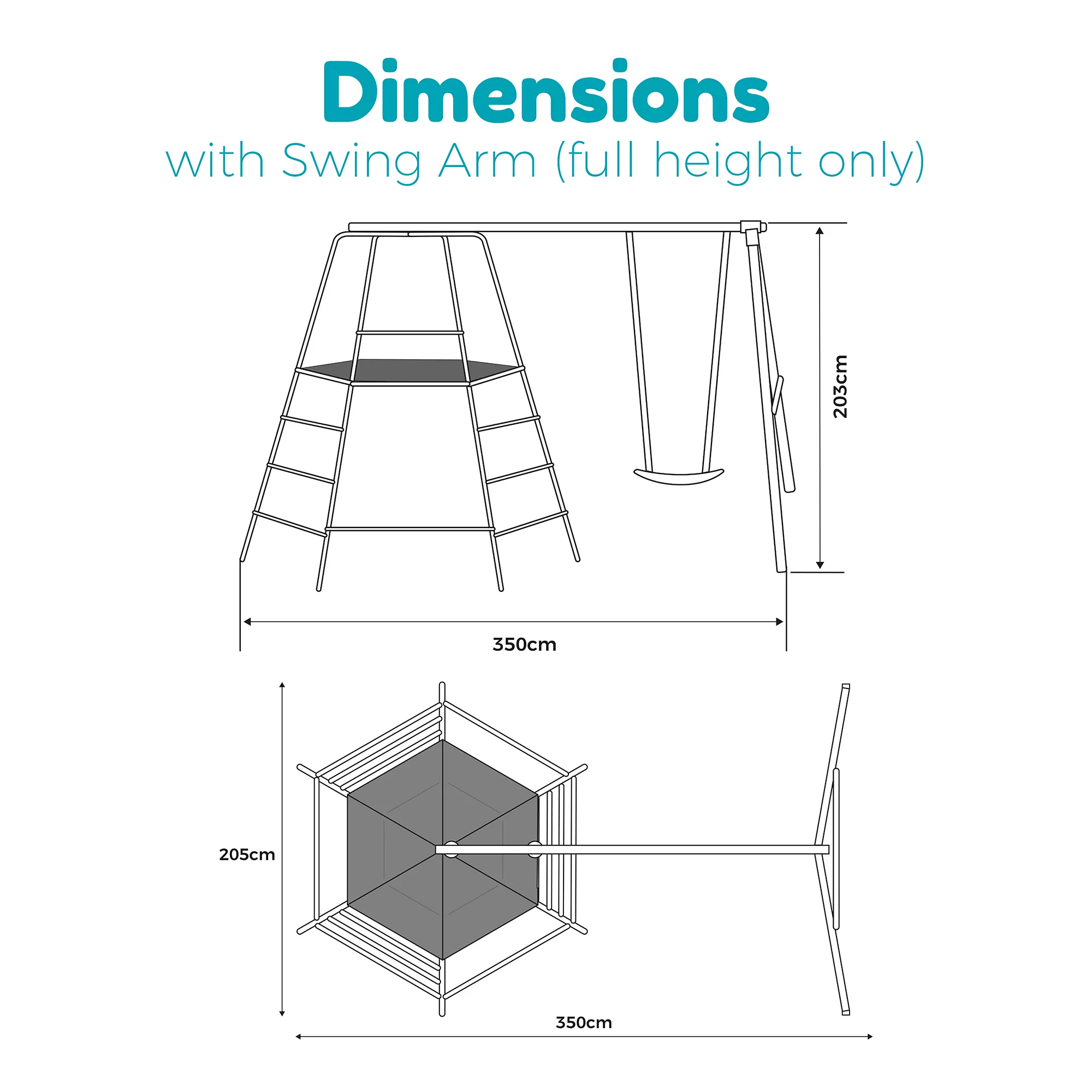 The TP Explorer Metal Climbing Frame has been loved by children for many years, perfect for imaginative play and getting your little ones running around creating unforgettable memories. The ‘growable’ frame is fun for children as young as just 18 months old when built at low height, at full height it’s perfect for kids aged 3-12 years. The Explorer is sold complete with a den and adventure style platform… what adventures will it take your little one on?! The TP Swing Arm and Rapid seat completes this best-selling set to bring a smile to your little ones face.